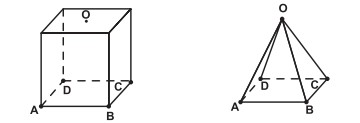 Uma indústria fabrica brindes promocionais em forma de pirâmide. A pirâmide é obtida a partir de quatro cortes em um sólido que tem a forma de um cubo. No esquema, estão indicados o sólido original (cubo) e a pirâmide obtida a partir dele.