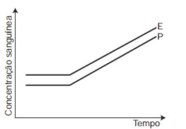 A pílula anticoncepcional é um dos métodos contraceptivos de maior segurança, sendo constituída basicamente de dois hormônios sintéticos semelhantes aos hormônios produzidos pelo organismo feminino, o estrogênio (E) e a progesterona (P). Em um experimento médico, foi analisado o sangue de uma mulher que ingeriu ininterruptamente um comprimido desse medicamento por dia durante seis meses.