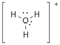 A reação de água com ácido clorídrico produz o ânion cloreto e o cátion hidrônio. A estrutura que representa corretamente o cátion hidrônio é
