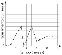 Considerando que, na ordenada, o faturamento quinzenal está representado em unidades desconhecidas, porém uniformemente espaçadas, qual dos gráficos é compatível com a descrição do comerciante?