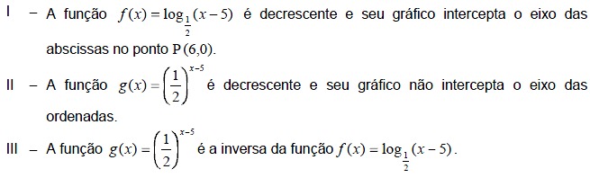 Considere as afirmações dadas abaixo, referentes a funções exponenciais e logarítmicas.