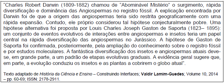Segundo o texto, foi no Período Jurássico que ocorreu uma rápida expansão das angiospermas. Sabe-se, pelos registros fósseis, que a fauna e a flora eram muito diferentes em relação às atuais.