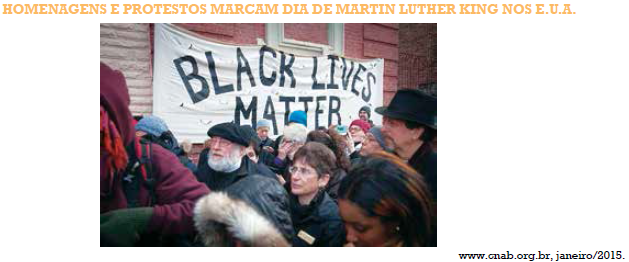 No último mês de janeiro, nas comemorações do Dia de Martin Luther King, propagou-se, mais uma vez, a frase Black lives matter “Vidas negras importam”, que surgiu nos protestos gerados pela morte de jovem negro, em agosto de 2014, na cidade norte-americana de Ferguson.