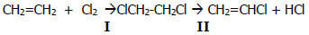 A produção industrial de cloreto de vinila, matéria-prima para a obtenção do poli(cloretode vinila), polímero conhecido como PVC, envolve as reações mostradas no esquema abaixo