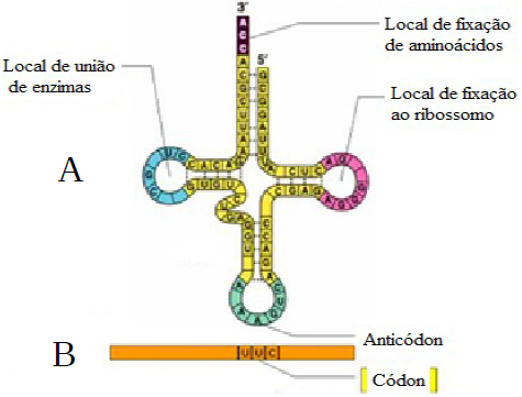 O esquema a seguir mostra um dos principais elementos do processo de síntese proteica:
