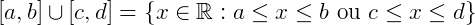Podemos também assumir que, se um intervalo é um subconjunto dos números reais, é possível realizar algumas operações entre intervalos, tais como união e interseção de intervalos. Supondo que tenhamos dois intervalos: [a, b] e [c, d] e que d > c > b > a.