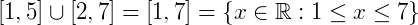 Vamos tomar um exemplo com valores. Supondo os intervalos [1,5] e [2,7]. A sua união será: