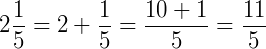 notamos que o seu resto será 1 e o quociente será 2. Então basta agora montar o número misto: