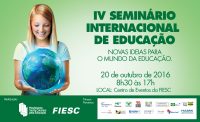A Federação das Indústrias de Santa Catarina (FIESC) realizará no dia 20 de outubro o IV Seminário Internacional de Educação. O encontro acontecerá no Centro de Eventos da FIESC das 8h:30 às 17h, localizado na Rod. Admar Gonzaga, 2765, Bairro: Itacorubi - Florianópolis/SC.