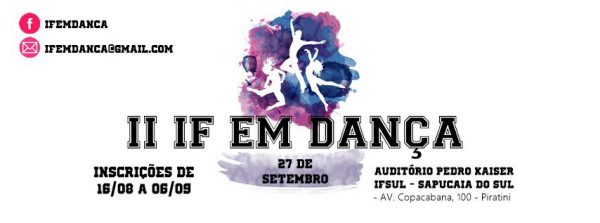 O Câmpus Sapucaia do Sul do Instituto Federal Sul-Rio-Grandense abriu as inscrições para o II IF em Dança. Podem se candidatar dançarinos de todos os estilos musicais da cidade de Sapucaia do Sul e Região.