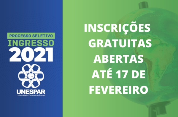 A Universidade Estadual do Paraná (Unespar) encerra na próxima quarta-feira (17), o prazo de inscrições para os Processos Seletivos 2021. As opções para ingresso nos cursos de graduação são as seguintes: