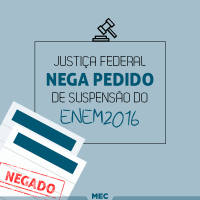 A ação do Ministério Público Federal do Ceará que pedia a suspensão do Exame Nacional do Ensino Médio de 2016 foi indeferida pela justiça na tarde de ontem (3). De acordo com a juíza Elise Avesque Frota, da 8.ª Vara, a aplicação da prova em duas datas distintas não irá ferir a isonomia do processo seletivo, já que ela "decorre dos critérios de correção previamente estabelecidos". O Ministério Público irá recorrer da decisão.