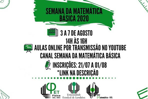 Os Programas de Educação Tutorial (PET) dos cursos de Matemática e de Física, do Centro de Ciências Exatas (CCE), da Universidade Estadual de Londrina (UEL), realizarão entre os dias 3 e 7 de agosto a Semana de Matemática Básica.