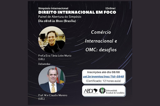 A Universidade Estadual de Londrina (UEL), no Paraná (PR), realizará entre os dias 8 e 15 de agosto o Simpósio "Direito Internacional em Foco", por meio do YouTube.