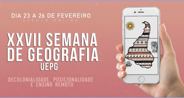 O Departamento de Geociências da Universidade Estadual de Ponta Grossa (UEPG) realizará nos dias 23, 24, 25 e 26 de fevereiro, a 27ª Semana de Geografia. Nesta edição, também serão realizados outros três eventos de forma simultânea: 8ª Semana e Jornada Científica a Distância; 19ª Jornada Científica da Geografia; e 13º Encontro do Saber Escolar e Conhecimento Geográfico da UEPG.