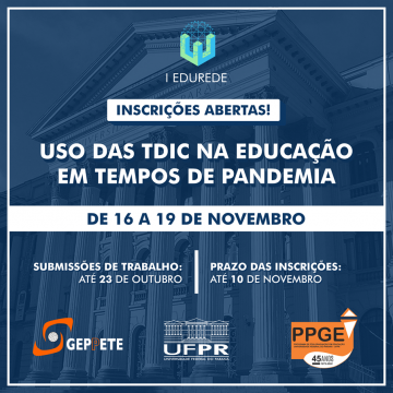 A Universidade Federal do Paraná (UFPR) promoverá entre os dias 16 e 19 de novembro o I EduRede - "Uso das TDIC na Educação em Tempos de Pandemia".