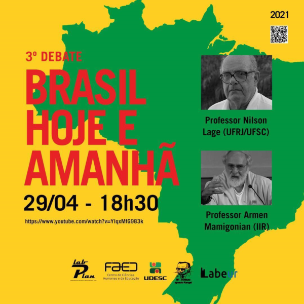 O III Debate Brasil Hoje e Amanhã acontecerá na próxima quinta-feira (29), a partir das 18h30 no canal do Labplan no YouTube. O evento é promovido pelo Laboratório de Estudos Urbanos e Regionais da Universidade Federal de Santa Catarina (Lebeur/UFSC), pelo Laboratório de Planejamento Urbano e Regional da Universidade do Estado de Santa Catarina (Labplan/Udesc), pelo Centro de Ciências Humanas e da Educação da Udesc (Faed/Udesc) e pelo Instituto Ignacio Rangel.