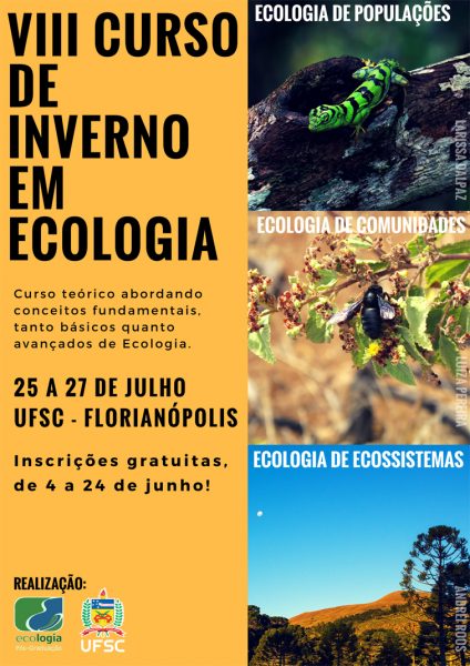 O evento será realizado entre os dias 25 a 27 de julho na UFSC - Florianópolis (SC). O curso abordará conceitos fundamentais em ecologia; ecologia de populações, comunidades e ecossistemas; e ecologia aplicada.