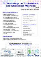 A Universidade Federal de São Carlos (UFSCar) por meio do Programa Interinstitucional de Pós Graduação em Estatística juntamente com a Universidade de São Paulo (USP) realizarão o V Workshop de Métodos Estatísticos e Probabilísticos entre os dias 6 e 8 de fevereiro de 2017.
