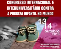 O Congresso Internacional e Interuniversitário Contra a Pobreza Infantil no Mundo promovido por professores das Universidades de Huelva, de Málaga e de Granada (Espanha) será realizado no Brasil nos dias 13 e 14 de outubro. Profissionais de diversas áreas, ONGs (Organizações Não Governamentais) e Público em geral que queiram participar, deverão efetuar as inscrições até o dia 10 de outubro no portal da UNIFESP. Até o dia 31 de agosto o valor da taxa de inscrição será R$ 30,00, após esse esse período o valor cobrado será R$ 50,00.