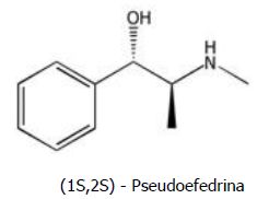 Na série Breaking Bad, o personagem Professor Walter White começou a produzir metanfetamina a partir da extração de pseudoefedrina de remédios contra resfriados. A estrutura da (1S,2S)-pseudoefedrina é mostrada abaixo.